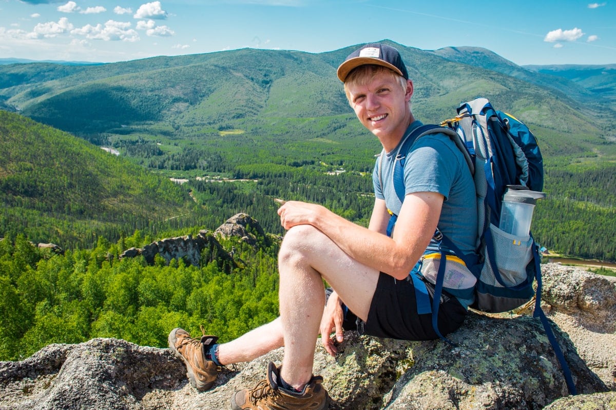 En la ruta de Angel’s Rocks nos atormentan mucho más los mosquitos y un calor insoportable, que no solo impregna el aire sino que parece brotar de la propia tierra. La creencia de que en Alaska hace frío se derritió a los 32 °C. Esta ruta nos lleva a unas rocas en una colina en medio de un bosque infinito. Alrededor no hay nada, solo árboles.